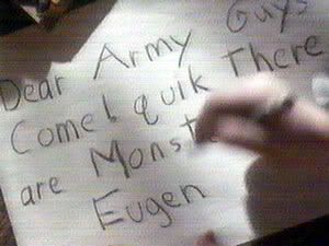 Yesterday, I was at a Halloween party and I brought The Monster Squad with me. People were interested in seeing what it was about. Before I poped it into the VCR, I told them that it's about a group of kids who go after 5 different monster icons in Horror film history. One: Dracula, Two: The Wolf Man, Three: The Mummy, Four: Gillman/The Creature of the Black Lagoon, and Five: Frankenstien. Then I poped the video tape into the VCR and pushed play and everyone had there eyes on the tv screen from begginning to end. After watching it, they all told me that they loved it. There were only a couple of people there who have seen it before I brought it to the party. I was suprised that everyone in that room loved it. They all ask me if it's on DVD. I told them, "No. But It should be on DVD." I'm really proud of myself for bringing a good horror movie to a Halloween party yesterday.  |
