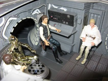 I did'nt see another topic for this, so I decided to create one. Anyway I was always hoping that Kenner/Hasbro would make a much larger and improved Falcon, and they finally did, much to my delight. I got mine about a month ago for 200 euro in my local Smyths toy superstore, and I'm well pleased with it. It makes a beautiful display piece, if you have the room for it. Although its not 100% percent to scale with figures, its still a huge improvment over the old kenner 1978 mold version. Here are some great pics: