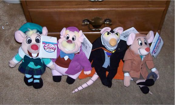 These are the four bean-bags produced for GMD and I believe they were only available at Disney stores...I could be wrong. Left to right: Olivia, Dawson, Basil, Ratigan.
