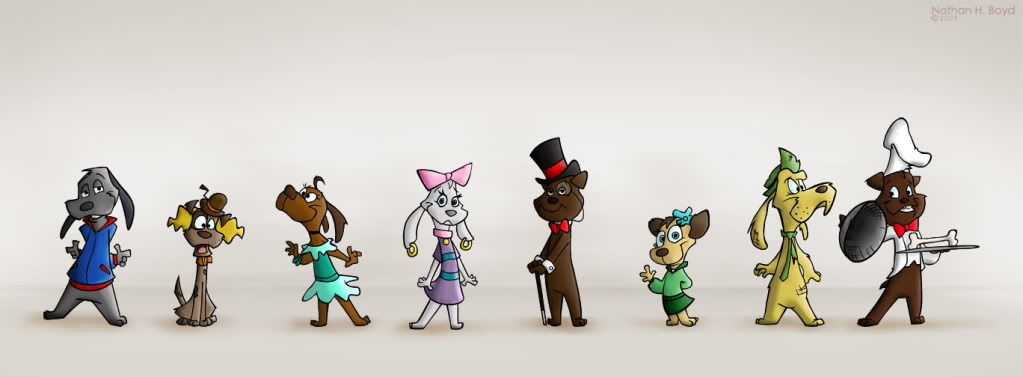Anyways, I thought I'd make this particular trip down memory lane a short one and draw all of the characters at once. Thus purging my system of all non-manly pound puppy foolishness.