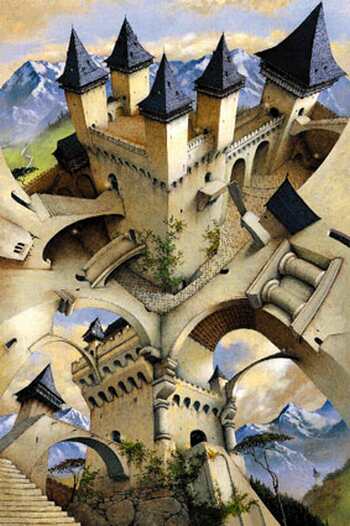 In fact I never really paid attention to Doctor Who until I saw the episode called "Castrovalva". Here, for the first time, was a television version of that old optical illusion of "the never-ending staircase" in the form of a city that's dimensionally folding-in on itself. I just about fell outta my chair at the sight of this.
