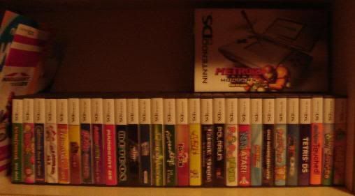 I would say the number of my DS games would be all the ones in that picture minus the bottom shelf. But I dunno, they're sorta spread out and I haven't counted them.